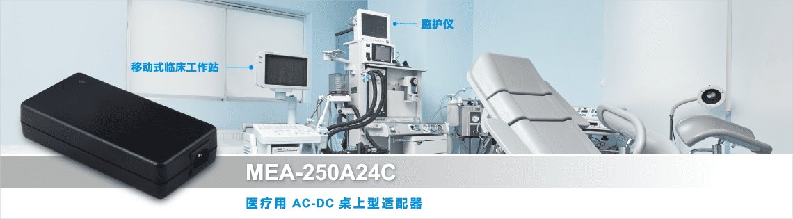 台达电子推出全新医疗用 250W AC-DC 桌上型适配器 MEA-250A24C。此款适配器符合最新医疗类 IEC / EN 60601-1-2 第四版认证要求。同时符合医疗类设备 EN 55011 以及信息类设备 EN 55032 EMC 标准。具备医 疗 IEC 60601-1 和信息类 IEC 60950-1 安全认证并达到欧洲 RoHS 2011/65/EU 的环保标准。产品高达 90% 的平均效率且符合能效等级 DOE LV6 标准。可操作在 +5°C~60°C 环境温度及 5000m 工作高度。具备 2 × MOPP 隔离保护及极低的漏电流等特性。