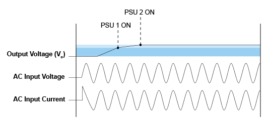 Answer: The turn ON would be non-monotonic as the power supply with the fastest startup time and rise time will turn on first. As a result, the startup waveform with 2 power supplies connected in series would see a step.