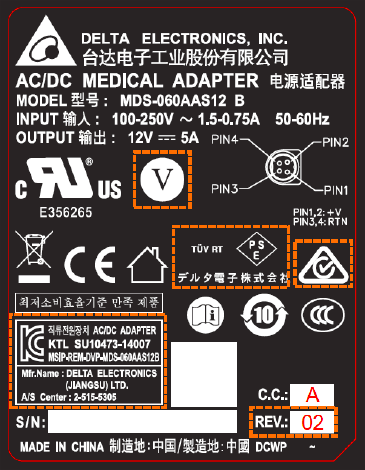 The additional safety marks PSE, KC, RCM and Energy Level V are implemented on to spec label. Product change is as below and the implemented date is 2018/10/01.