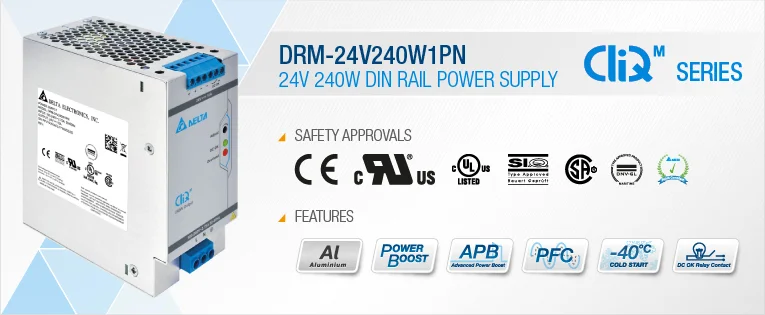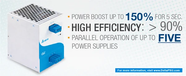 Delta introduces the latest DIN rail power supply Chrome II Series. The Chrome II Series features 30 W / 60 W / 100 W models with up to 92.16 W output. It has 12 V, 24 V, and 48 V nominal voltage outputs and accepts 85-264 VAC universal voltage input. It boasts a compact design to be aligned with DIN 43880, a standard that defines dimensions for distribution boards of building control and home automation systems. The Series is also certified to IEC/EN 60335-1, IEC/EN 61558-1/ -2-16 to ensure electrical safety for distribution boards. All the above features make the Series suitable for building automation and household appliances.