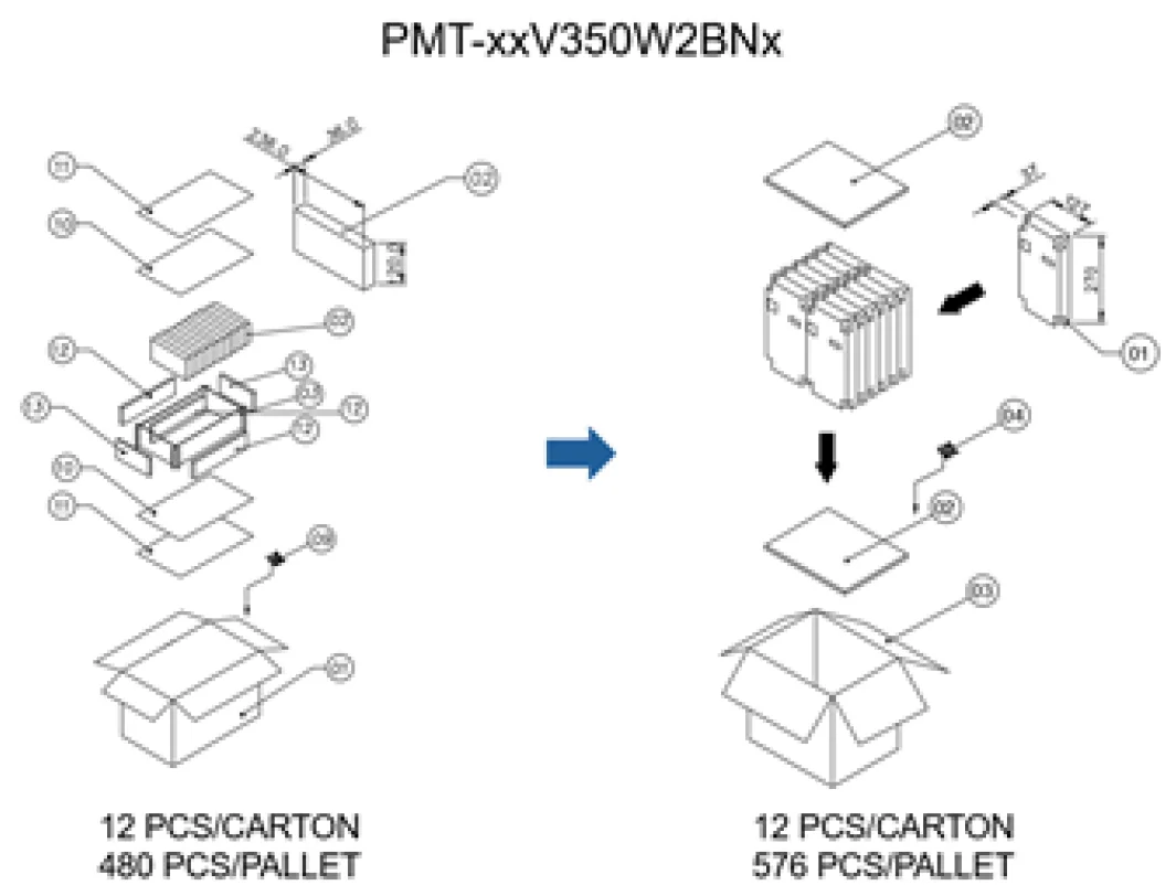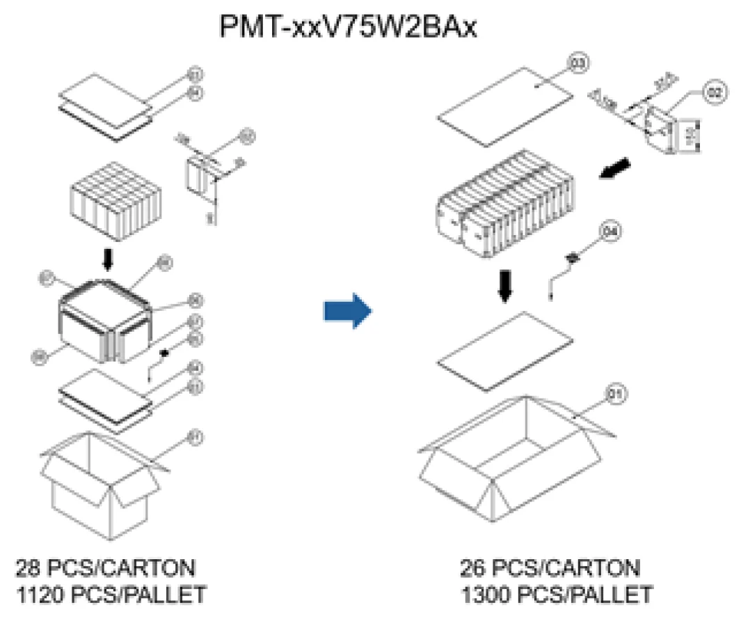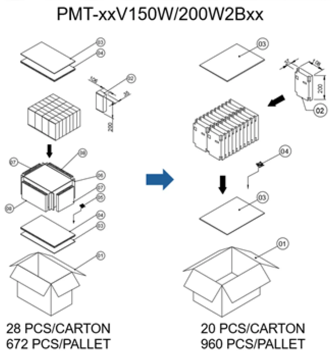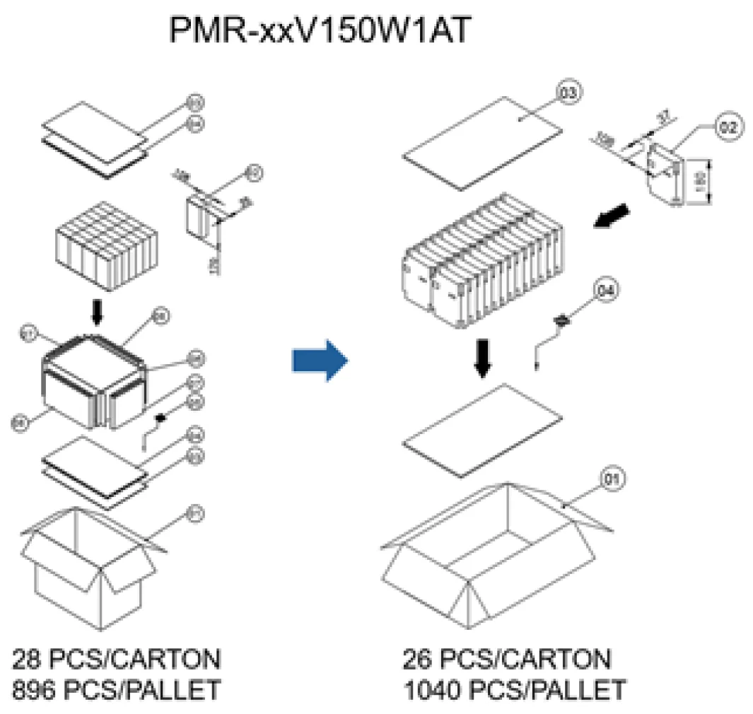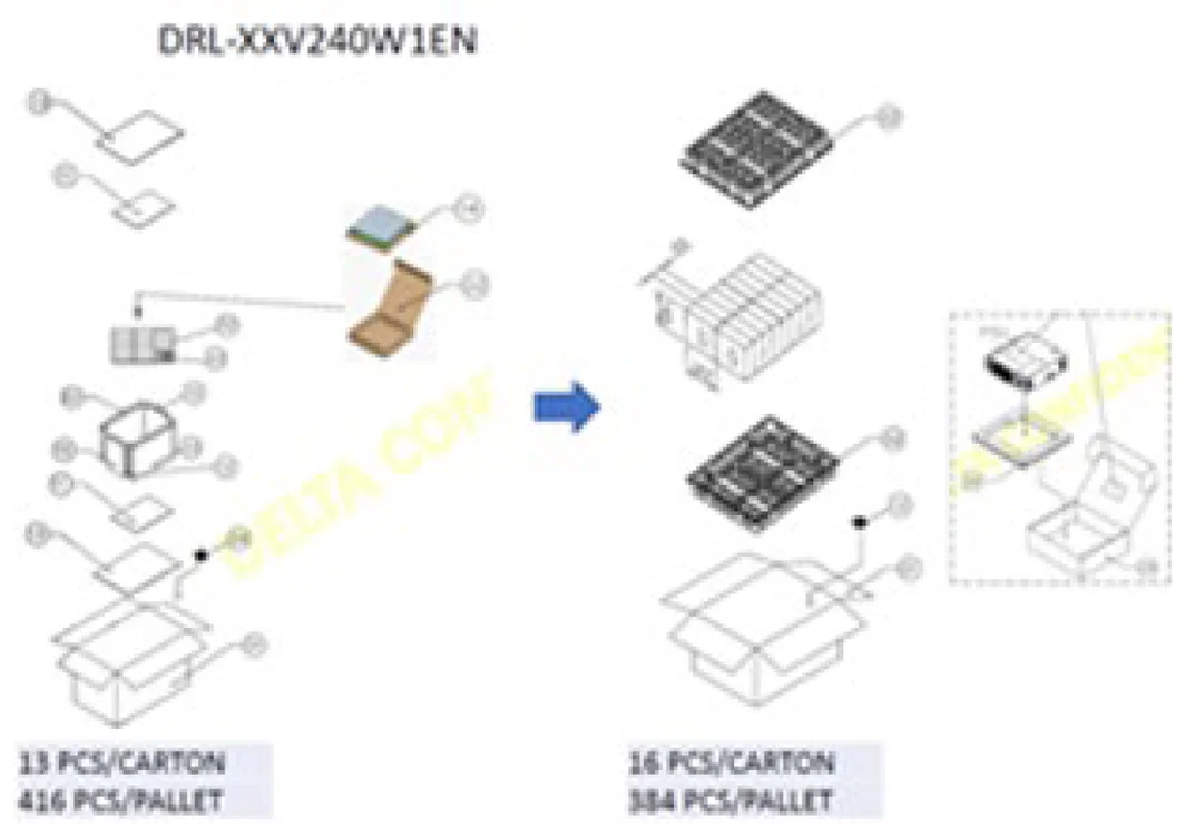 Delta is committed to environmental sustainability and to minimizing the environmental impact of our products and packaging. As part of our ongoing green initiatives, we will implement plastic-free packaging materials for the following industrial power supply series.