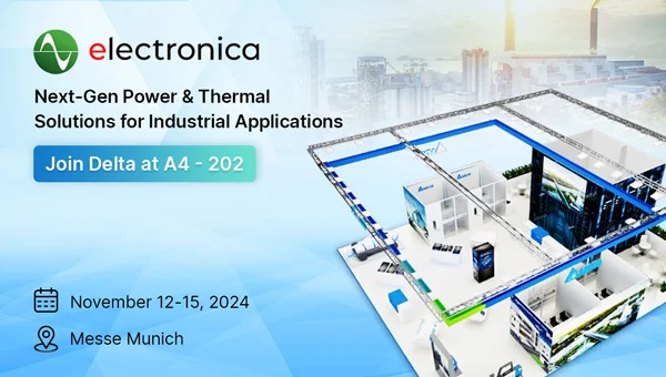 Delta, a global leader in power electronics, will present its latest innovations in industrial power supplies and battery charging at Electronica 2024, held from November 12 to 15 at Messe München. The showcase will highlight cutting-edge solutions across key applications areas, including wind turbine systems, cobot arms, warehouse automation, building automation, medical equipment, EV charging, outdoor lighting, and industrial vehicle charging.