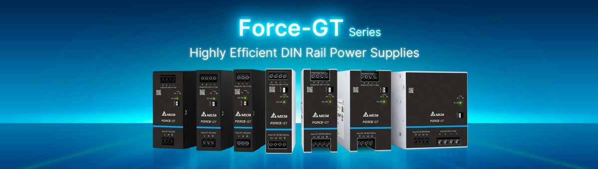 Delta launches new DIN Rail power supply Force-GT Series with single-phase and three-phase models. The Series features wide power range from 120 W to 960 W, high power efficiency of up to 95%, and an ultra-slim design. Two single-phase 480 W models of the Series have just been certified with 80 PLUS Platinum for 115 V Industrial, outcompeting other DIN rail power supplies.