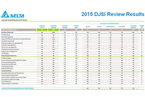 Index (DJSI), Delta was again selected as a member of DJSI World for the fifth