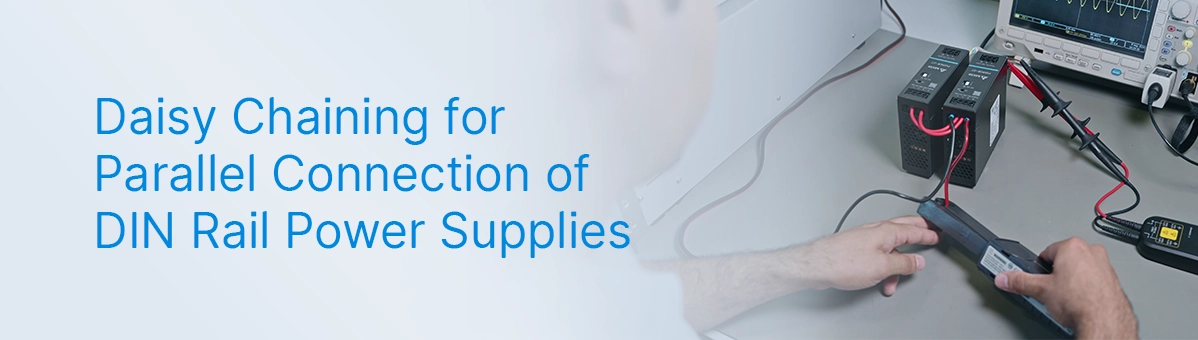 Daisy Chaining is a commonly used term which defines a connection method of multiple devices, such as power supplies, in a sequential fashion. In the following article we will explain how to connect power supplies (PSUs) in a daisy chain format for industrial applications and the limitations to be considered.