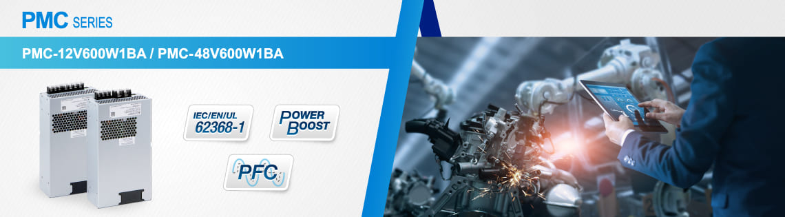 Delta Electronics is extending the popular 600W PMC series of panel mount power supply with output voltage 12V and 48V, namely, PMC-12V600W1BA and PMC-48V600W1BA. The products come with universal AC input at 85Vac to 264Vac and have built-in active PFC circuit. Both models also have feature Power Boost of 200% (peak load 12V 100A, 48V 25A) for 3 seconds, included the built-in fan speed control and fan lock protection.