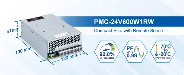 台達新款具備遙感功能小型化 PMC 24V 600W 電源供應器