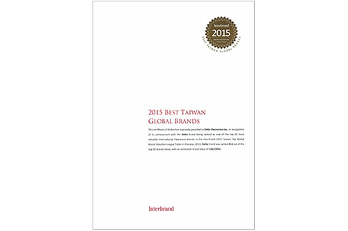 Delta Electronics was named as one of the Best Taiwan Global Brands for the fifth consecutive year at an award ceremony announcing the results of a brand survey by Interbrand and the Taiwan Industrial Development Bureau. Delta's brand value has also increased by 17% to US$ 199 million this year and it became the only company with double-digit growth for the past three consecutive years. This recognition affirms Delta's efforts in continuously developing new products and technology that fit global green business trends.