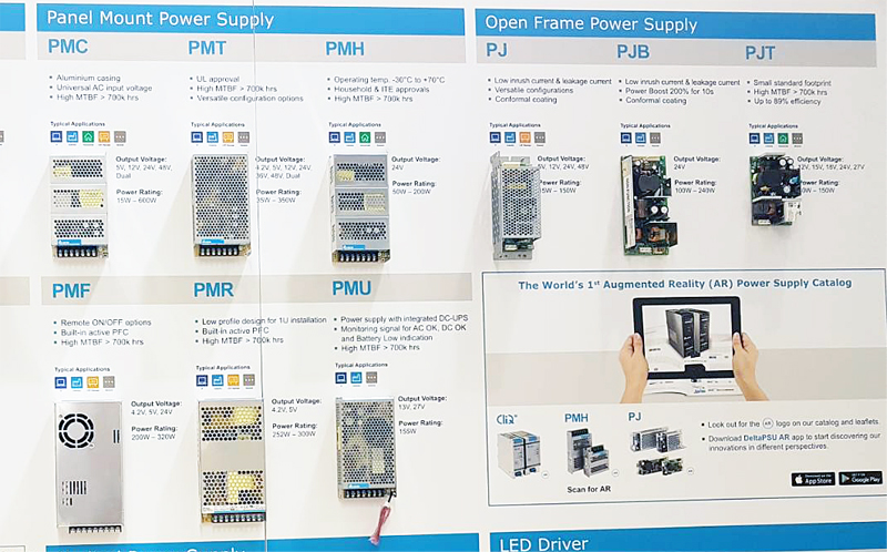 Another new industrial power supply showcased in the exhibition is the PJT-27V150WBNA. This model offers 27V/5.55A output and built-in standby output 12V/0.5A. The 3”x5” product comes with universal AC input voltage range at 90Vac to 264Vac, is usable worldwide and features built-in Power Boost of 175W for 5 seconds. The highly efficient convection cooling design enables optimum thermal management for high power efficiency up to 89.5% and has built-in active PFC. The PJT-27V150WBNA complies with major international safety standard IEC/EN/UL 60950-1 standards and EMI to EN 55022, Class B.