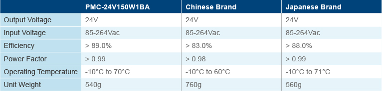 Delta Electronics has added another 24V Panel Mount Power Supply series to the popular PMC series. Power Factor Correction (PFC) is designed into this model which operates at 24V output with 150W power rating at wide range input of 85Vac to 264Vac (PMC-24V150W1BA). Its active PFC of >0.99 @ 115Vac significantly improves the harmonic current levels to meet EN61000-3-2 standard and also reduces energy consumption. The lightweight and tough aluminum body weighs less than 540Grams and has a high efficiency of >89% with a typical MTBF of 700,000 hours which is one of the highest in the market. The product has several protection features including overvoltage, overcurrent and over temperature.