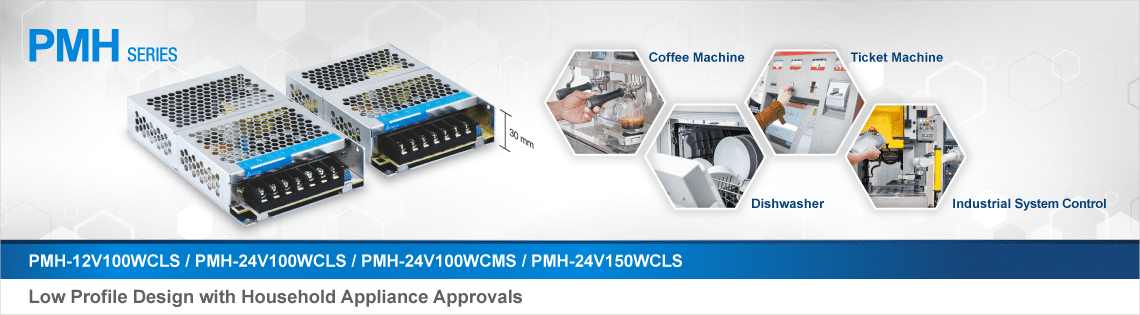 New PMH Series of Low Profile Panel Mount Power Supply with EN 60335 Household Appliance Approvals